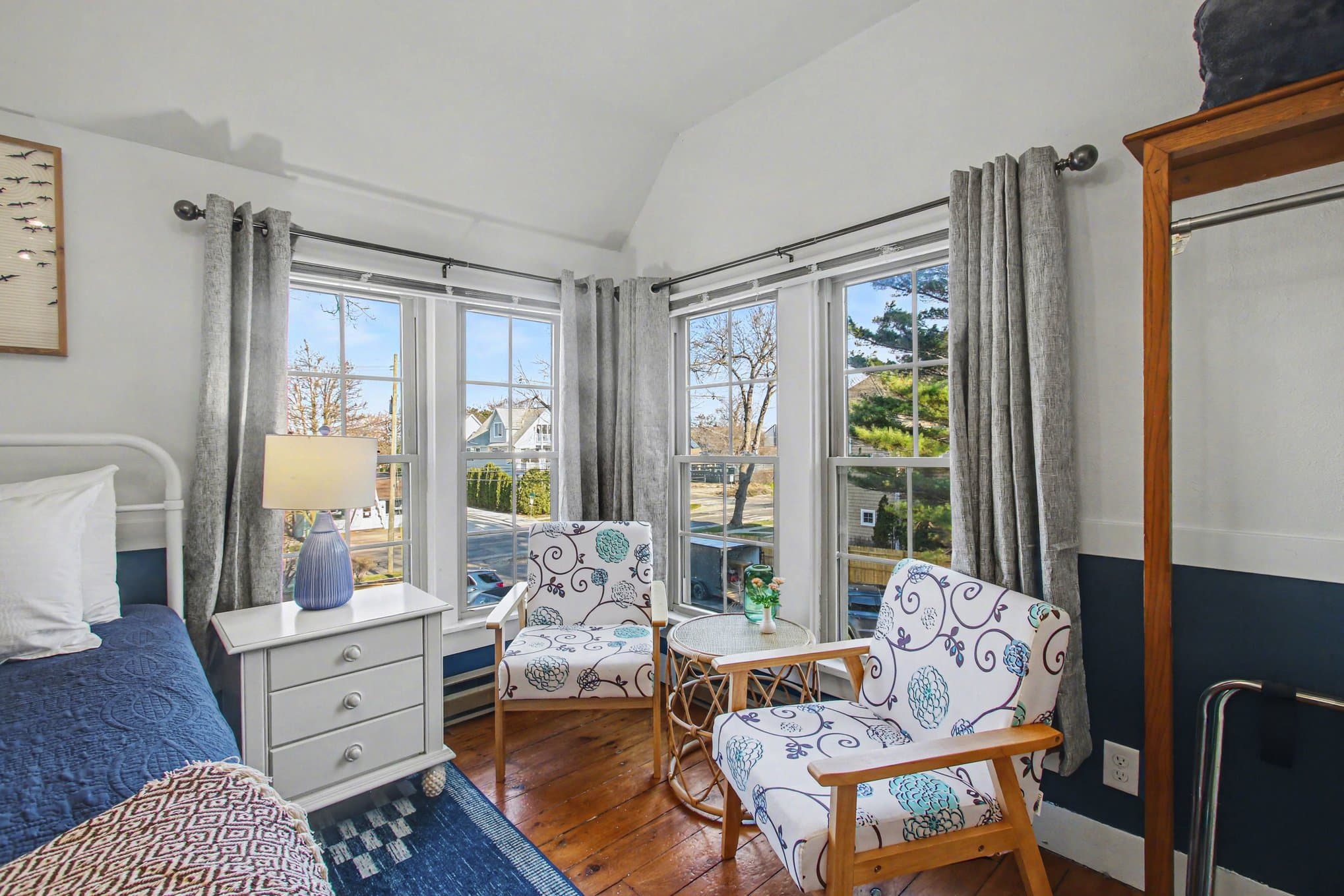 Room 10 is a bright, sunny second-floor retreat with corner windows that fill the space with natural light and offer beautiful views. With a king bed, cozy seating area, and private bath, it's an inviting place to relax and unwind after a day by the lake or around town.